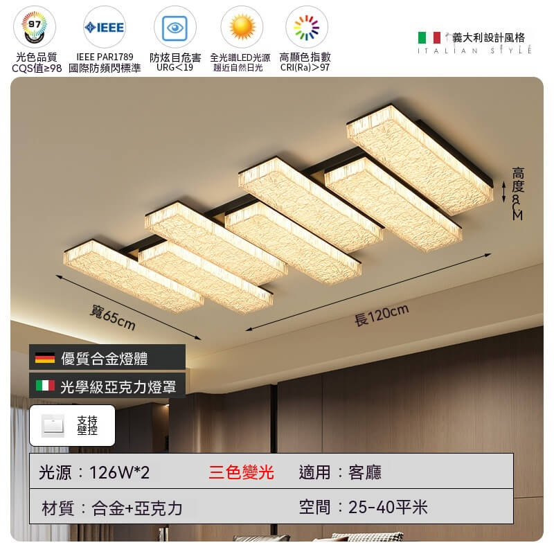 $$$$$$$ 代客安裝 $$$$$$$ 產地: China,貨號: mm200,顯色指數: ≥95,燈光顏色: 1種,照射面積: 10㎡ -15㎡,光源功率: 96W+三色變光,96W+無極調光+遙控,燈身材質: 鐵材,燈罩材質: 亞克力,光源類型: led燈,電壓:...