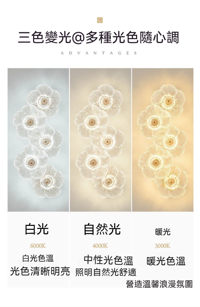 燈光顏色: 【流光花語】單頭-(全光譜)-三色變光,【流光花語】3頭-(全光譜)-三色變光,【流光花語】-5頭(全光譜)-三色變光,2頭 全光譜三色變光,【流光花語】單頭-(全光譜)-單色暖光,【流光花語】3頭-(全光譜)-單色暖光,【流光花語】-5頭(全光譜)-單色暖光,2頭 全光譜單色暖光,