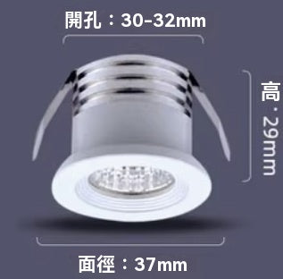銀色3W正白光【開孔32-34mm】,銀色3W自然光【開孔32-34mm】,銀色3W暖白光(黃光)【開孔32-34mm】,