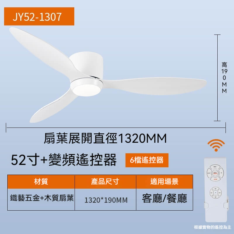 尺寸:白色-42寸變頻遙控,黑色-42寸變頻遙控,白色木紋-42寸變頻遙控,白色-52寸變頻遙控,黑色-52寸變頻遙控,白色木紋-52寸變頻遙控,白色-46寸3葉DC馬達,白色-52寸3葉DC馬達,
