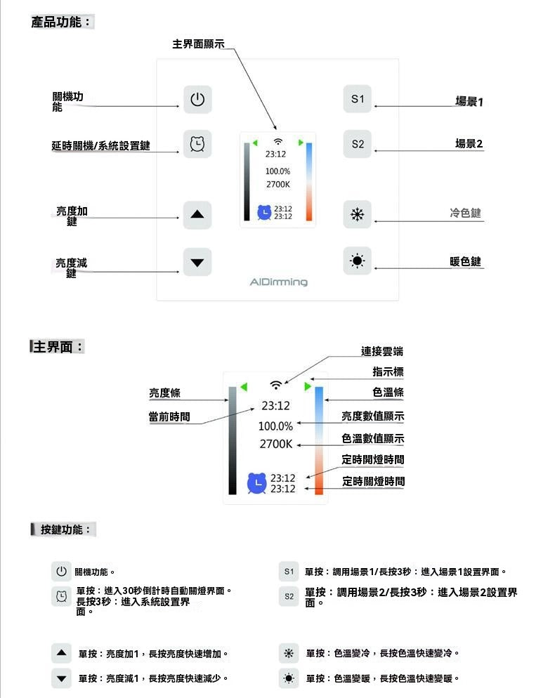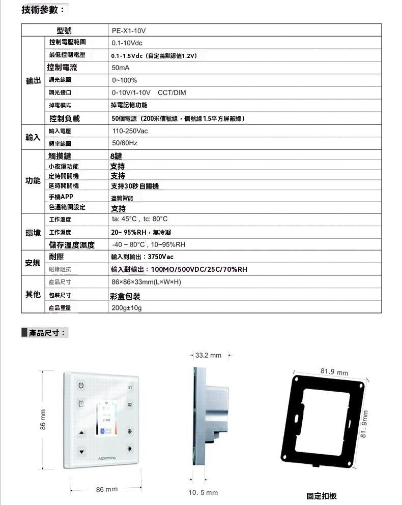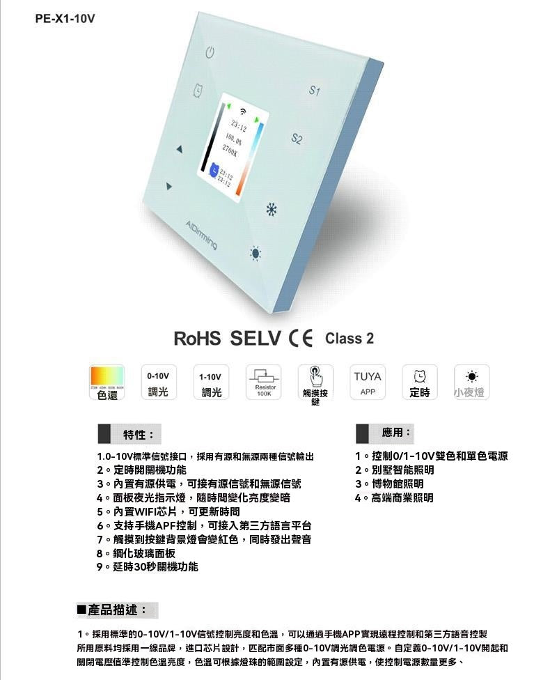 規格: 0-10V調光調色觸摸面板,