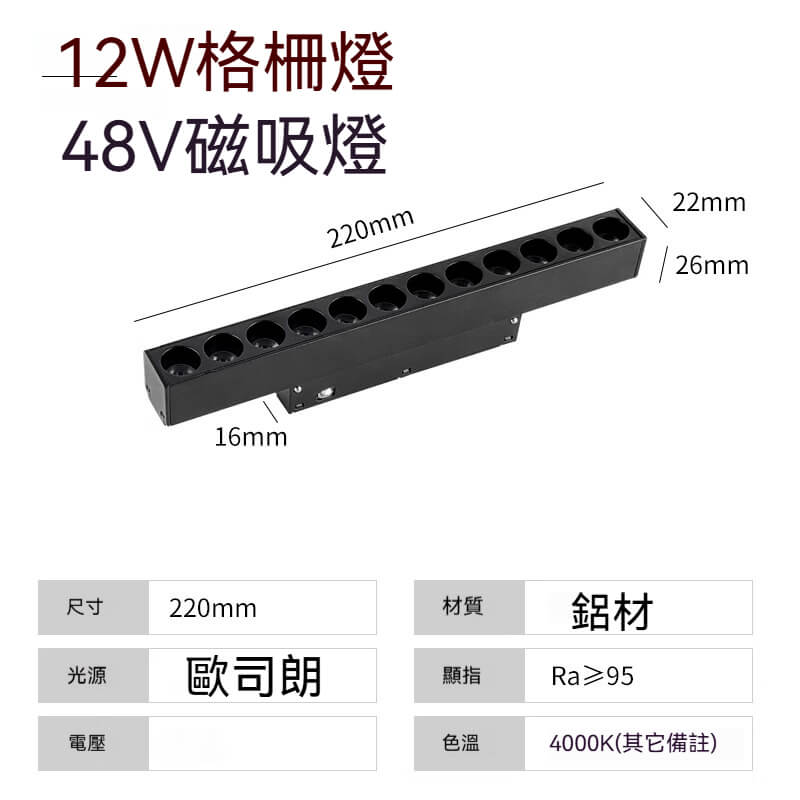 分類:以下4000k中性光,後面選項有3000k,3500k,6000k 泛光燈【12w】長30cm中性光4000k 泛光燈【20w】長60cm中性光4000k 泛光燈【30w】長90cm中性光4000k 泛光燈【40w】長120cm中性光4000k 格柵燈【6w】長13cm中性光4000k 格柵燈【12w】長22cm中性光4000k 格柵燈【18w】長30cm中性光4000k 格柵燈【24w】長40cm中性光4000k 摺疊格柵燈【6w】長13cm中性光4000k 摺疊格柵燈【12w】長24cm中性光4000k 射燈【10w】中性光4000k全光譜護眼 射燈【20w】中性光4000k全光譜護眼 以下是3000k暖黃光磁吸燈 泛光燈【12w】長30cm暖光3000k 泛光燈【20w】長60cm暖光3000k 泛光燈【30w】長90cm暖光3000k 泛光燈【40w】長120cm暖光3000k 格柵燈【6w】長13cm暖光3000k 格柵燈【12w】長22cm暖光3000k 格柵燈【18w】長30cm暖光3000k 格柵燈【24w】長40cm暖光3000k 摺疊格柵燈【6w】長13cm暖光3000k 摺疊格柵燈【12w】長24cm暖光3000k 射燈【10w】暖光3000k全光譜護眼 射燈【20w】暖光3000k全光譜護眼 以下是3500k暖白光磁吸燈 泛光燈【12w】長30cm暖白光3500k 泛光燈【20w】長60cm暖白光3500k 泛光燈【30w】長90cm暖白光3500k 泛光燈【40w】長120cm暖白光3500k 格柵燈【6w】長13cm暖白光3500k 格柵燈【12w】長22cm暖白光3500k 格柵燈【18w】長30cm暖白光3500k 格柵燈【24w】長40cm暖白光3500k 摺疊格柵燈【6w】長13cm暖白光3500k 摺疊格柵燈【12w】長24cm暖白光3500k 射燈【10w】暖白光3500k全光譜護眼 射燈【20w】暖白光3500k全光譜護眼 以下是6000k白光磁吸燈 泛光燈【12w】長30cm白光6000k 泛光燈【20w】長60cm白光6000k 泛光燈【30w】長90cm白光6000k 泛光燈【40w】長120cm白光6000k 格柵燈【6w】長13cm白光6000k 格柵燈【12w】長22cm白光6000k 格柵燈【18w】長30cm白光6000k 格柵燈【24w】長40cm白光6000k 摺疊格柵燈【6w】長13cm白光6000k 摺疊格柵燈【12w】長24cm白光6000k 射燈【10w】白光6000k全光譜護眼 射燈【20w】白光6000k全光譜護眼 以下是智能款,可手機app,智能音箱語音控制調節,無極調光 智能款泛光燈【12w】長30cm(集中控制調節,調色溫,調亮度) 智能款泛光燈【20w】長60cm(集中控制調節,調色溫,調亮度) 智能款泛光燈【30w】長90cm(集中控制調節,調色溫,調亮度) 智能款泛光燈【40w】長120cm(集中控制調節,調色溫,調亮度) 智能款格柵燈【6w】長13cm(集中控制調節,調色溫,調亮度) 智能款格柵燈【12w】長22cm(集中控制調節,調色溫,調亮度) 智能款格柵燈【18w】長30cm(集中控制調節,調色溫,調亮度) 智能款格柵燈【24w】長40cm(集中控制調節,調色溫,調亮度) 智能款摺疊格柵燈【6w】長13cm(集中控制調節,調色溫,調亮度) 智能款摺疊格柵燈【12w】長22cm(集中控制調節,調色溫,調亮度) 智能款射燈【10w】(集中控制調節,調色溫,調亮度) 智能款射燈【20w】(集中控制調節,調色溫,調亮度)